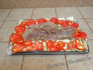 Déposer les rondelles de courgette autour du poisson et saler légèrement.