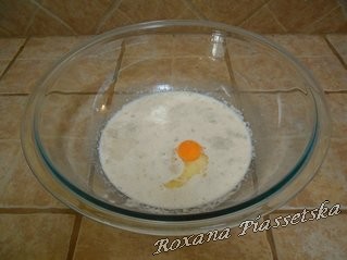 Dans un grand saladier mélanger la préparation levure-lait avec un œuf.