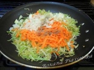 Faire revenir le chou dans une poêle avec 1 cuillère à soupe d’huile pendant 15 minutes.